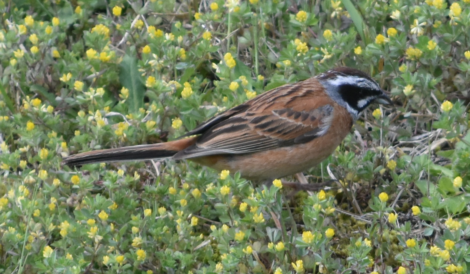 桜の広場の上り坂から防災公園に戻りました。ホオジロ、ヒバリが出てきてくれました。モンキチョウが目の前をひらひら、花に止まるところを捉えたかったのですが、それは成らずです。