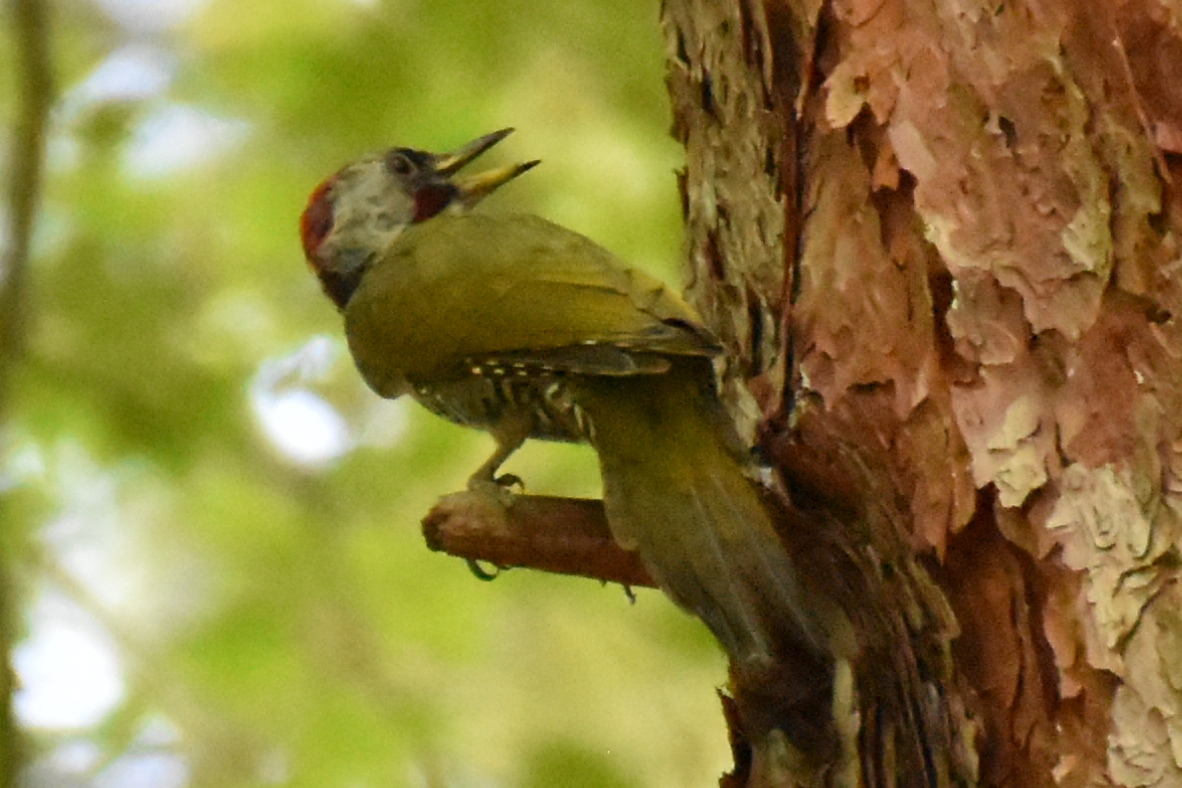 1回目は長谷池のそば、少しだけ、森に入り込める山道があり、そこにメジロを追って入っていたときに妻がアオゲラを見つけました。アオゲラを見たのは久しぶりです。写真はよくありませんが、エビデンスとしての掲載です。